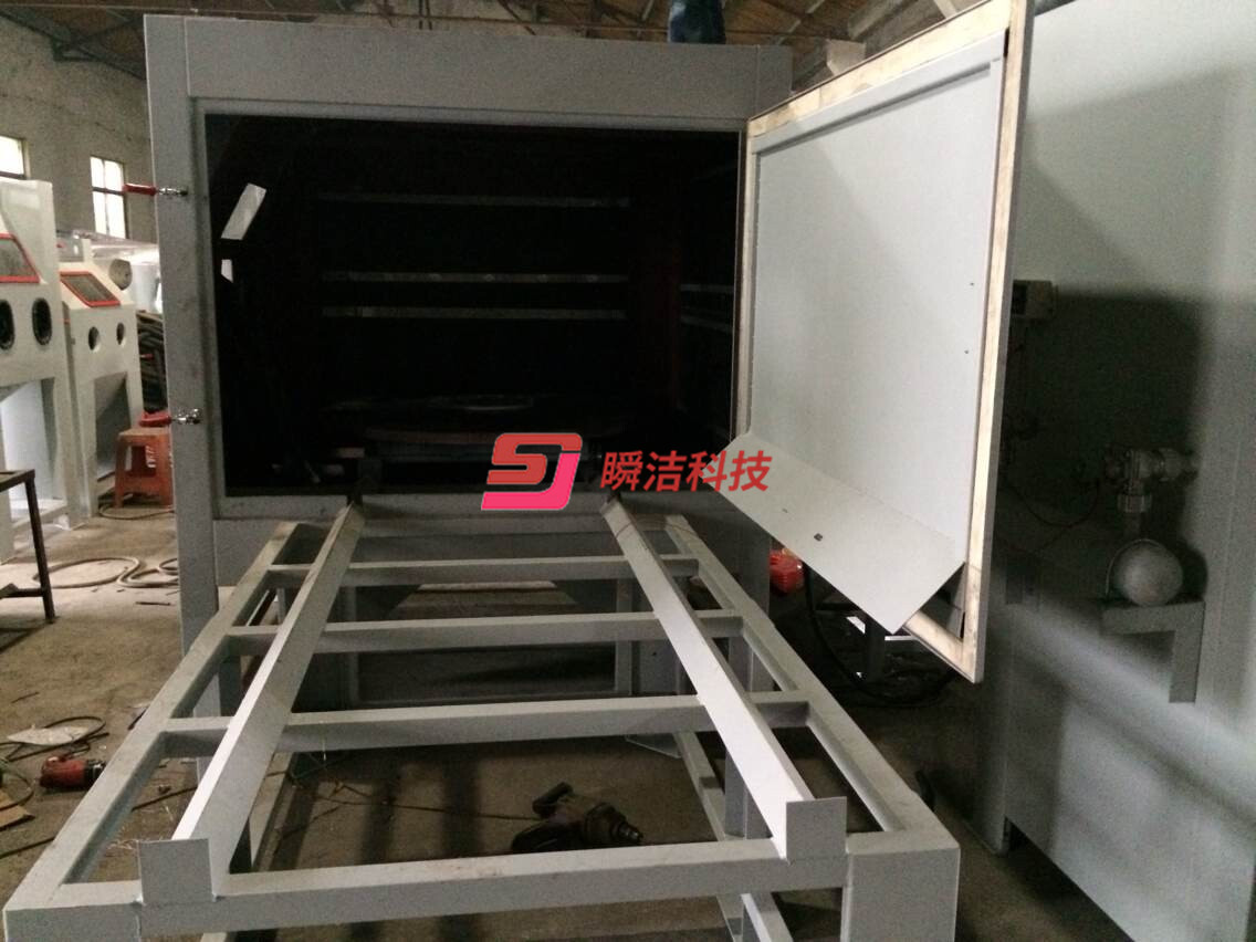 3、配備活動(dòng)臺(tái)車(chē),和轉(zhuǎn)盤(pán),操作時(shí)將工件放在轉(zhuǎn)盤(pán)上,然后推入機(jī)內(nèi)即可噴砂作業(yè),操作簡(jiǎn)單省力。