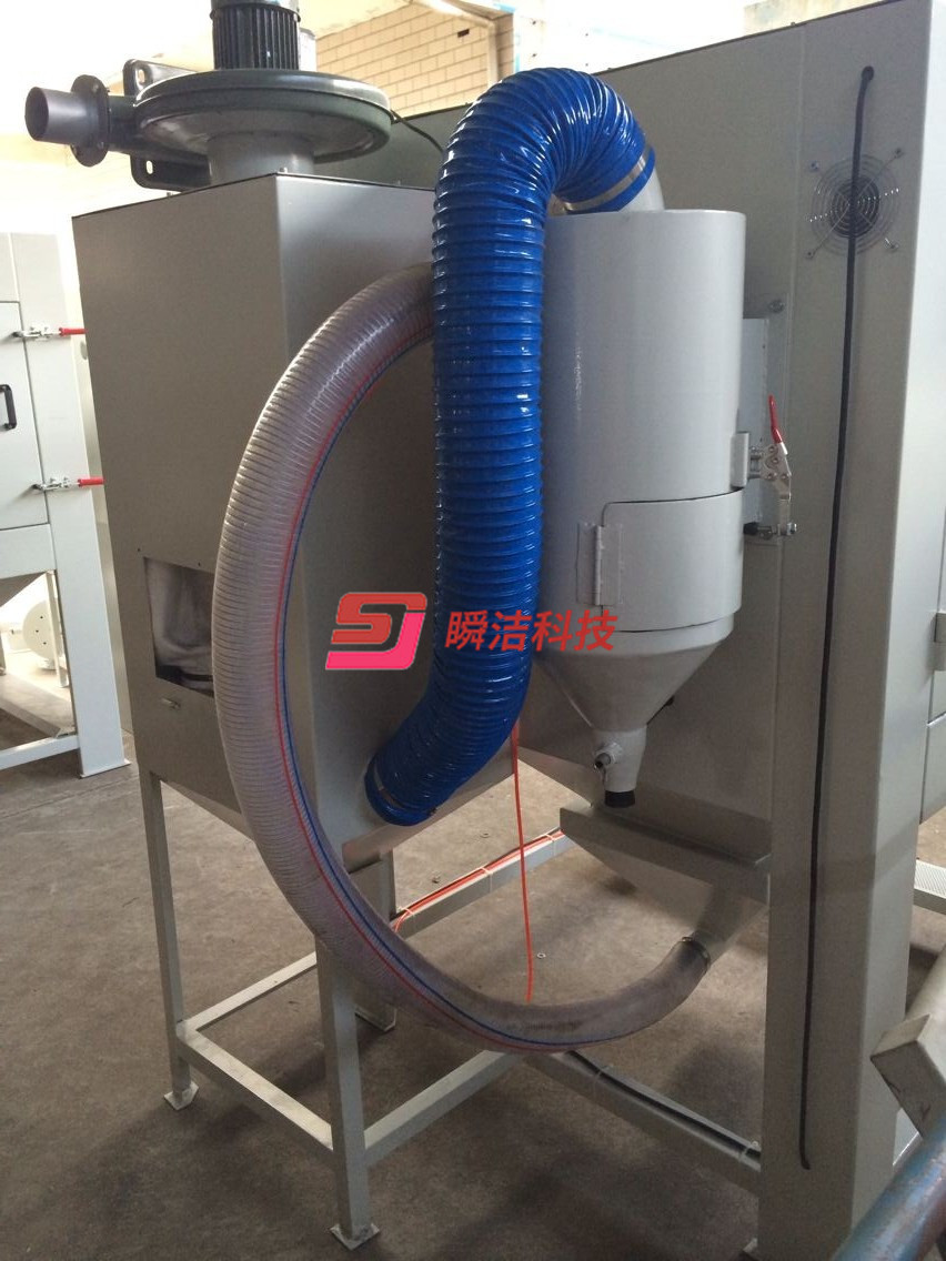 7、高效率旋風(fēng)分離器,置于分離器下方之微調(diào)調(diào)節(jié)閥,操作方便,可微調(diào)分離150#-320#間砂材的取舍,讓使用者在省砂的要求下,更能夠達(dá)到射流強(qiáng)而穩(wěn)定,而其主要功能為有效的分離砂塵,不僅提高了工件加工面的穩(wěn)定性及縮短了加工時(shí)間,也因此能比其他機(jī)種節(jié)省了30%以上的砂材。