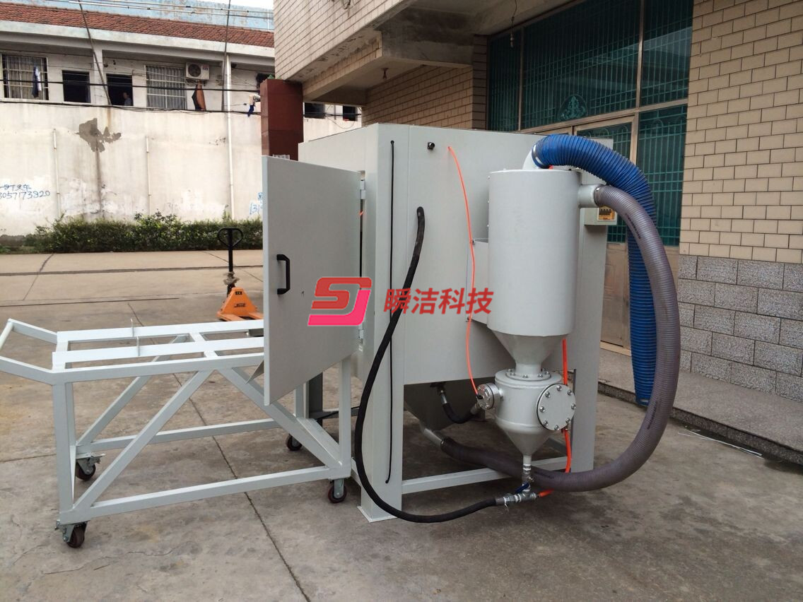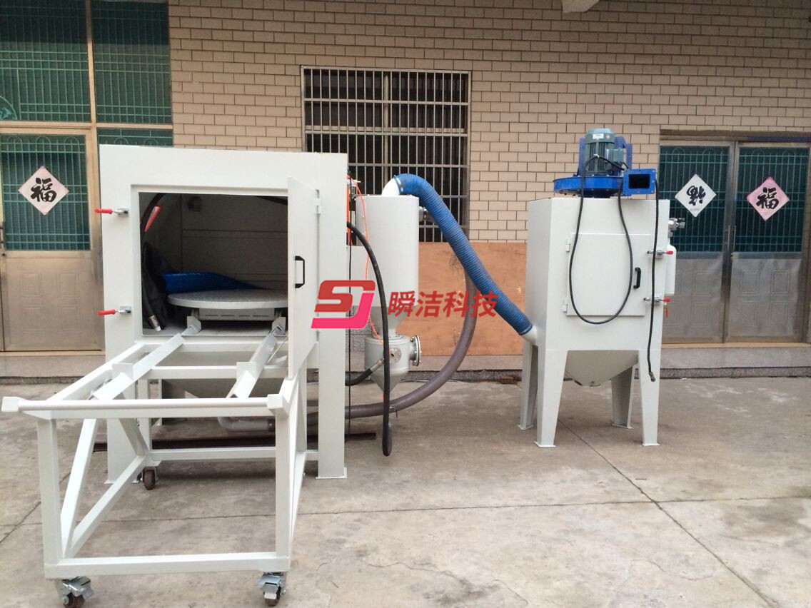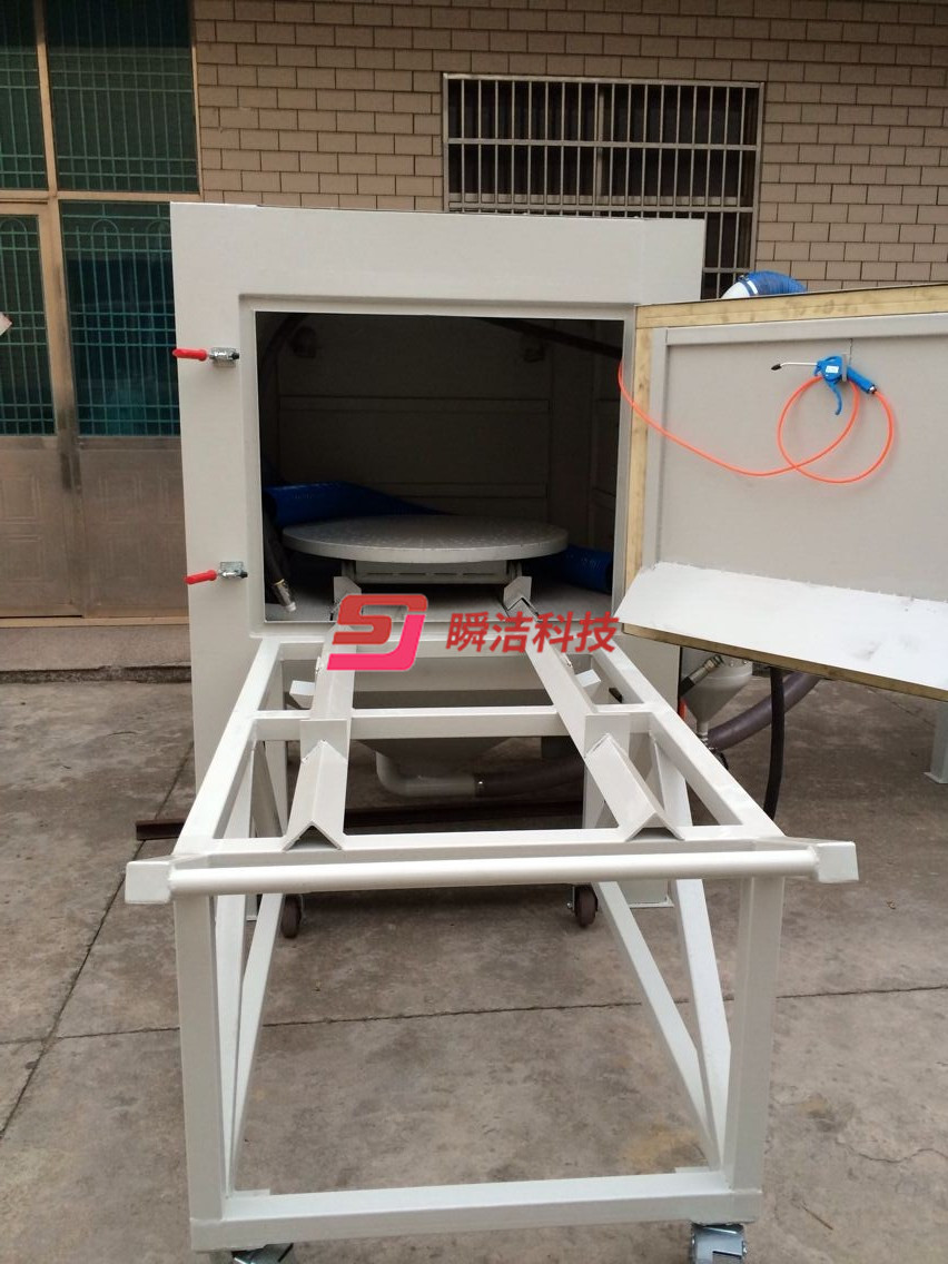 3、配備活動臺車,和轉(zhuǎn)盤,操作時(shí)將工件放在轉(zhuǎn)盤上,然后推入機(jī)內(nèi)即可噴砂作業(yè),操作簡單省力。